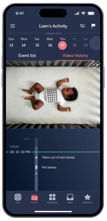 - Vollständiger Videoverlauf * - Greife auf deinen Videoüberwachungsverlauf zu und verfolge das Schlafverhalten deines Babys
